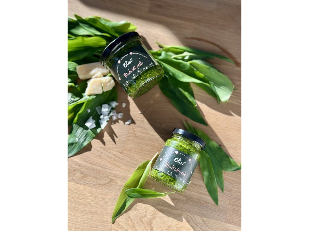Medvědí pesto je jedinečná delikatesa, která v sobě spojuje intenzivní chuť čerstvého medvědího česneku s jemností pečlivě vybraných ingrediencí. Každá sklenička vzniká ručně – od samotného sběru medvědího česneku až po finální zpracování, díky čemuž si pesto zachovává maximální čerstvost a autentickou chuť.