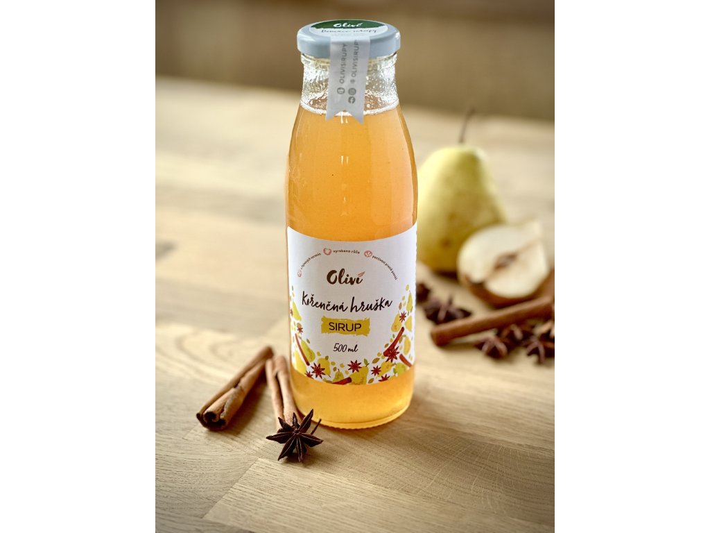 Složení: cukr, ovocný výluh s kořením (pitná voda, hruška 18%, skořice, badyán), kyselina: kyselina citronová.