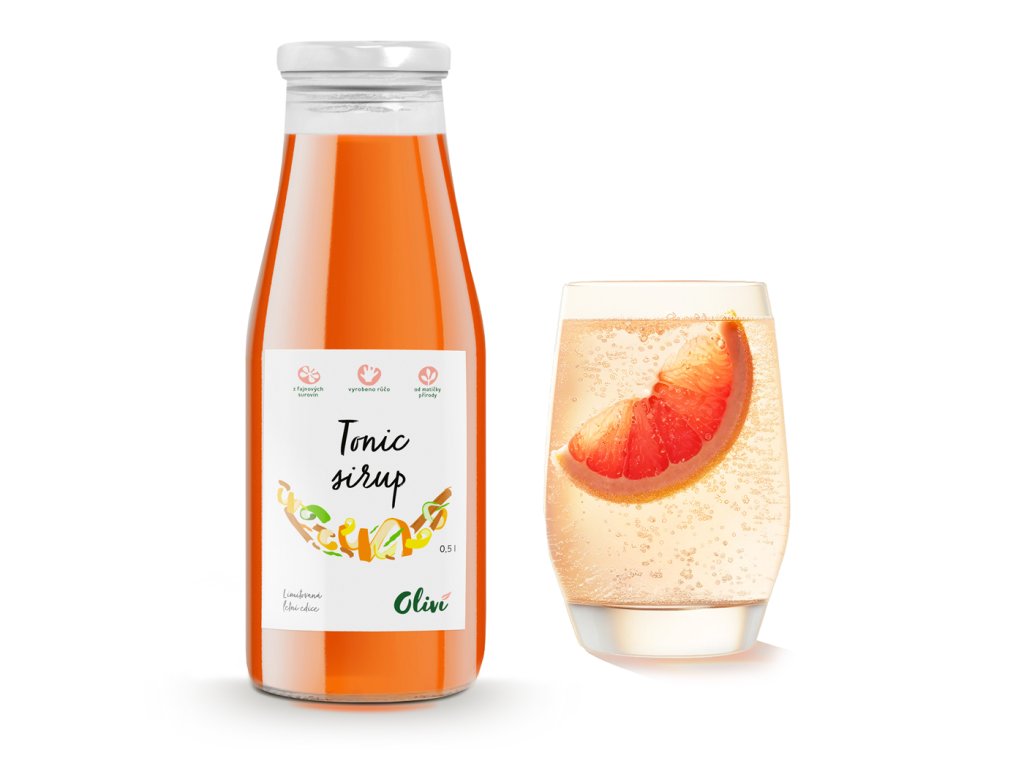 0,04 l Tonic sirupu, 0,4l sodovky, led, citron, pomeranč, grep